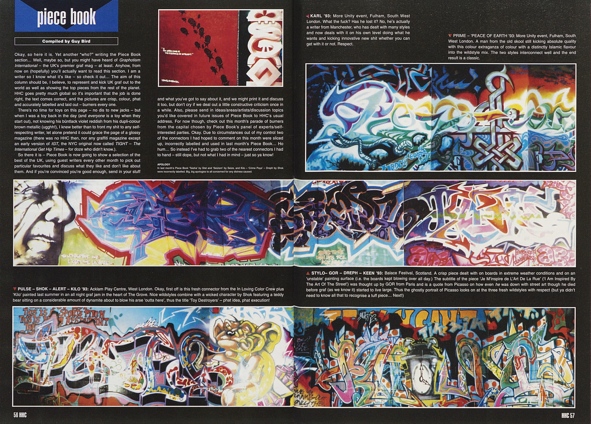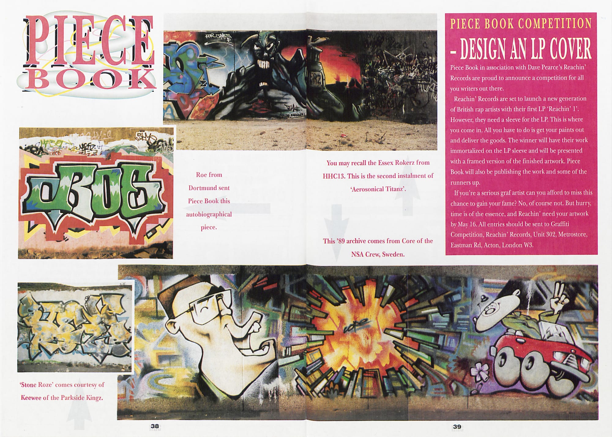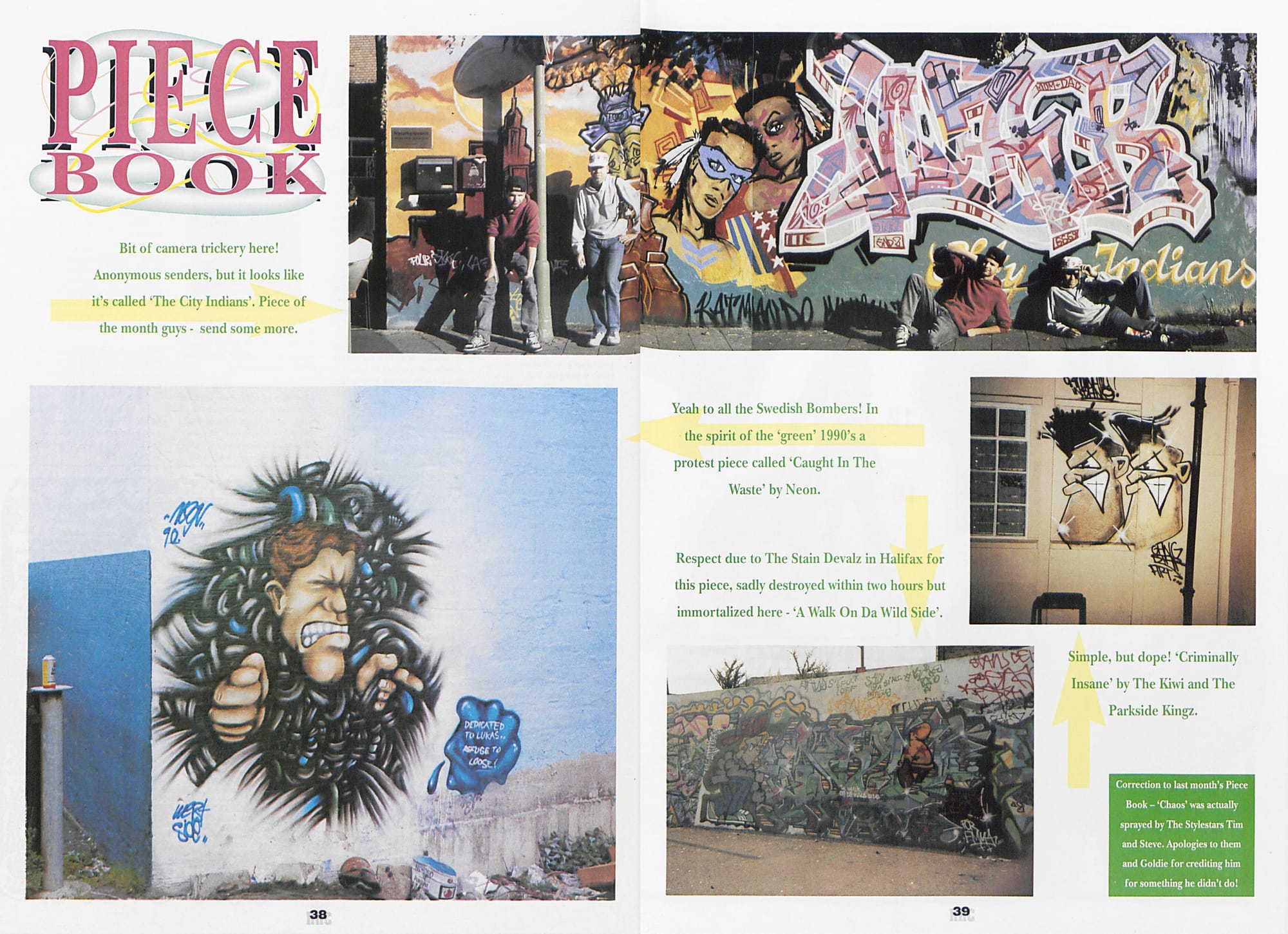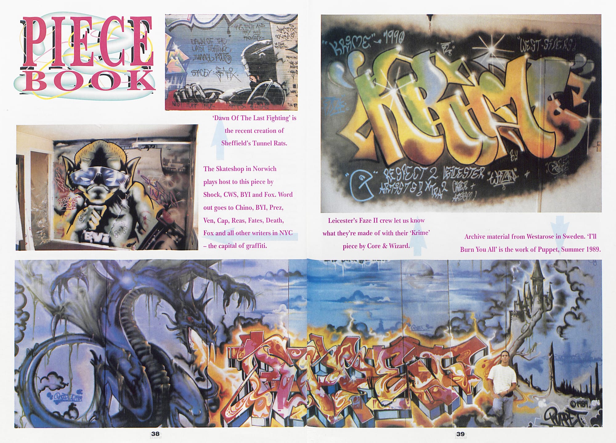 Apology: In last month's Piece Book Taisha by Stet and "Seizism' by Seize, and Kio - Crime Pays' - Dreph by Shok were incorrectly labelled. Big, big apologies to all concerned for any distress caused.