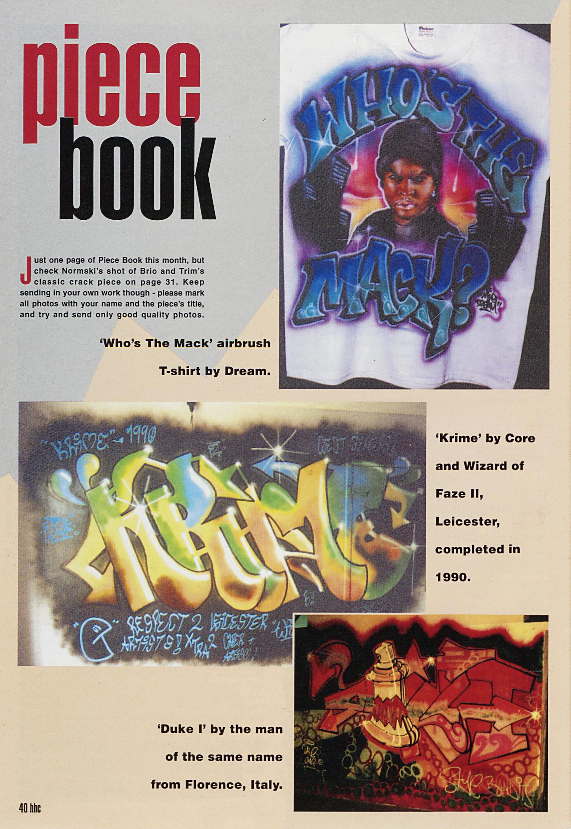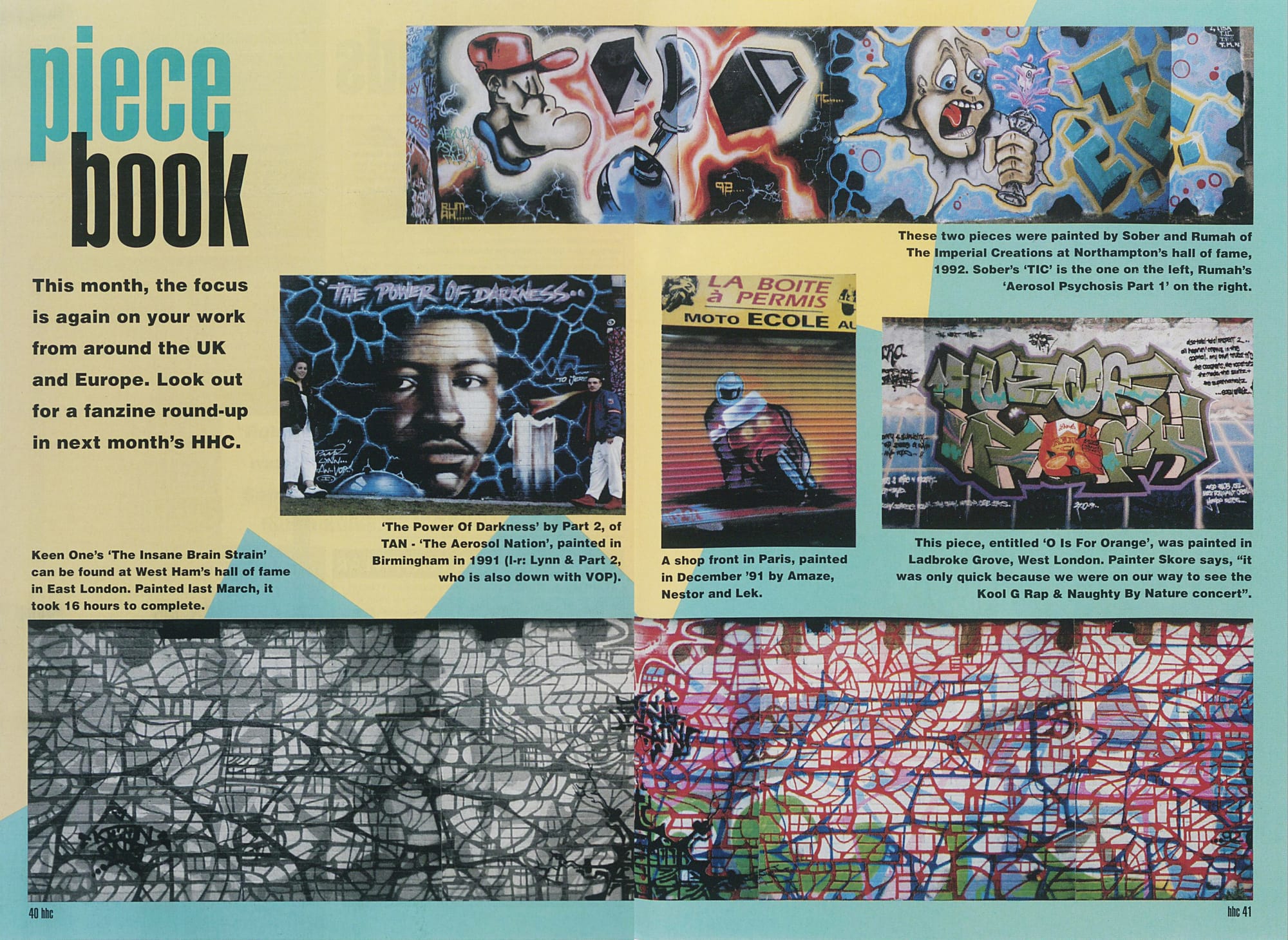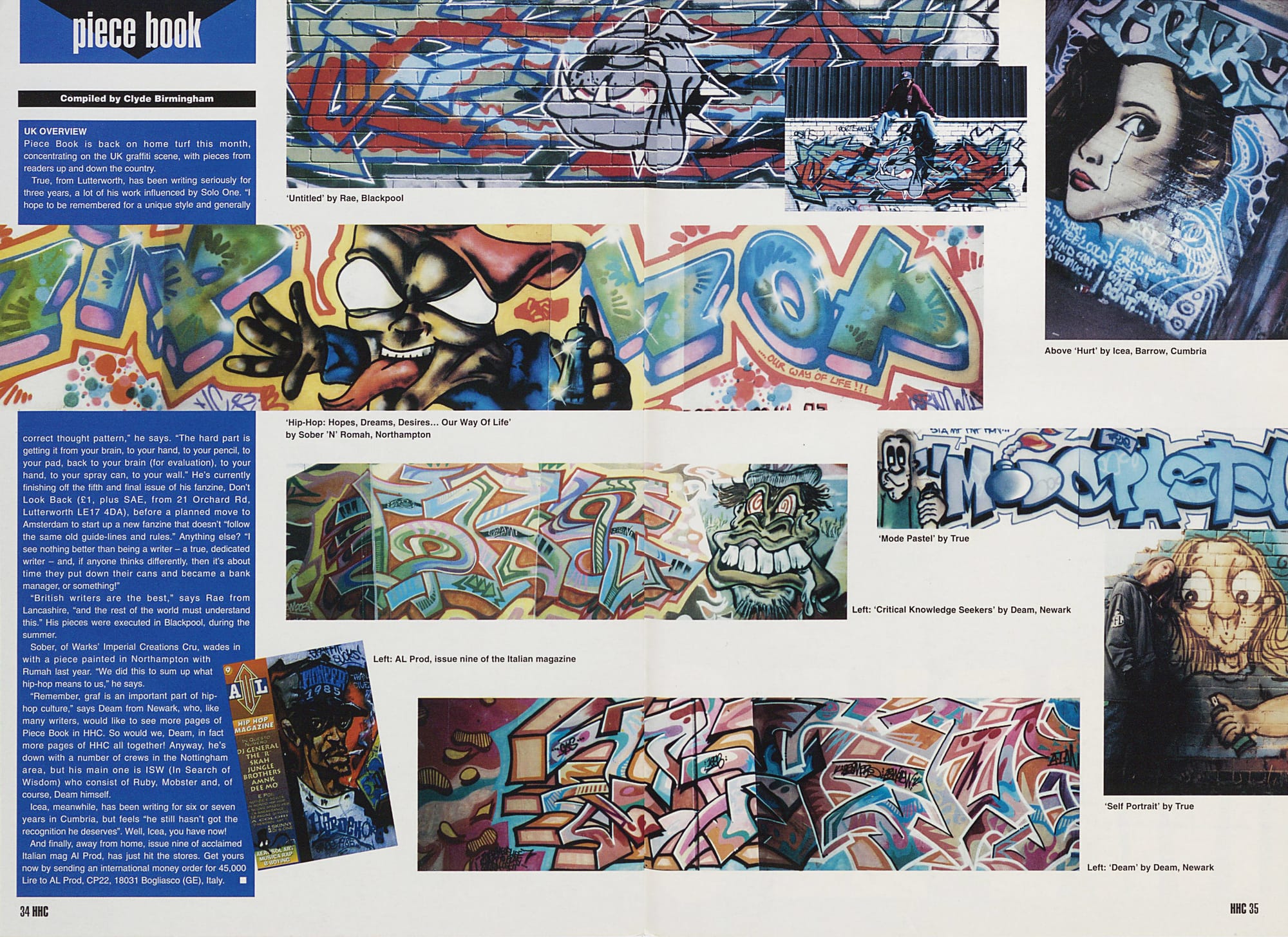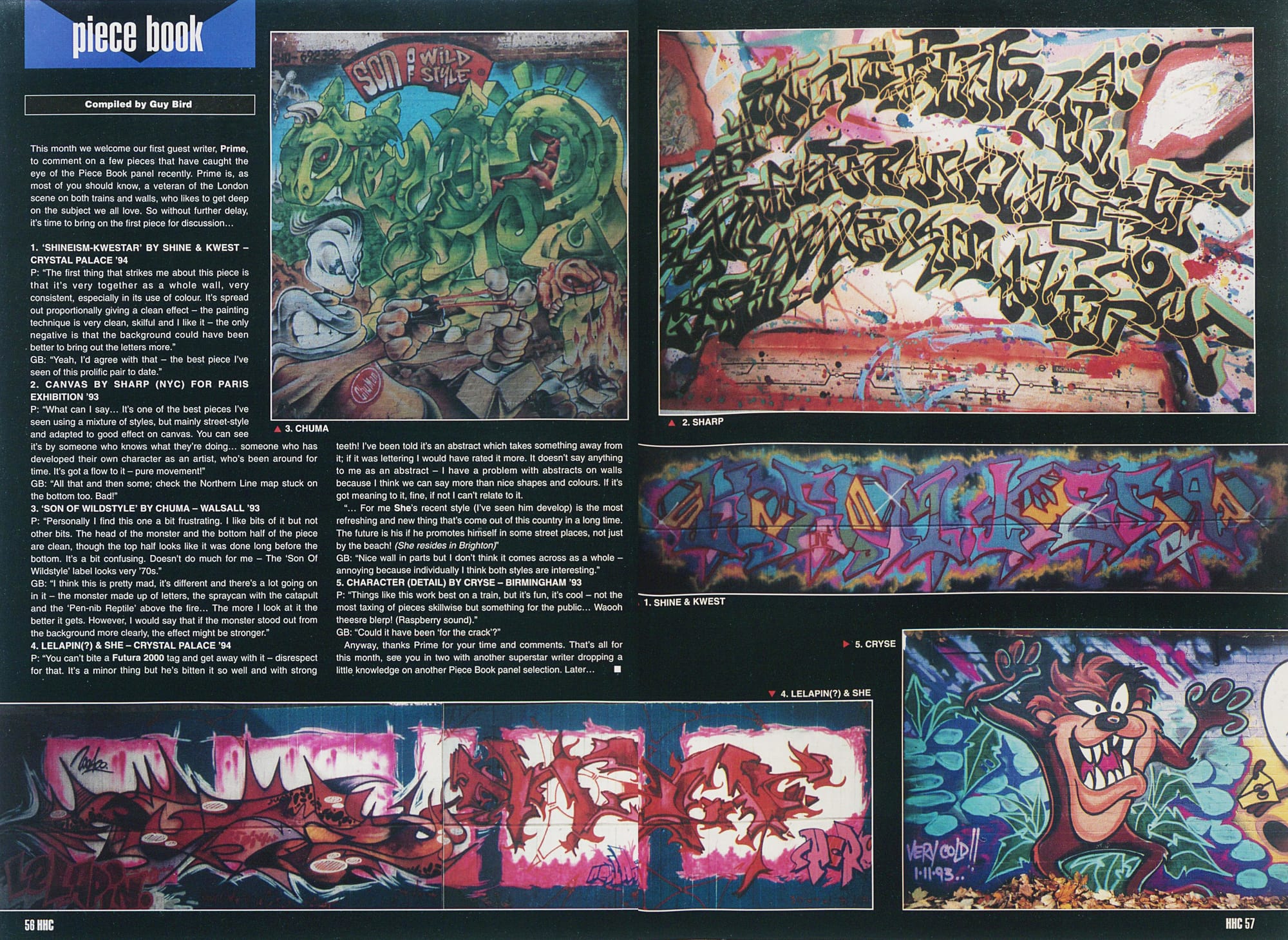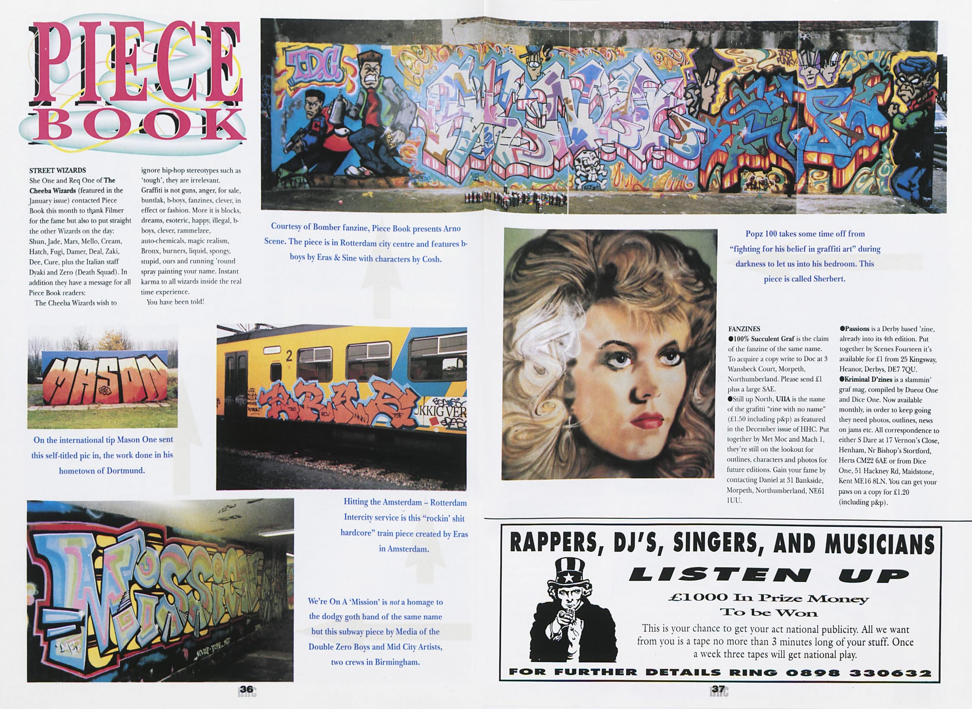 Apology: In last month's Piece Book Taisha by Stet and "Seizism' by Seize, and Kio - Crime Pays' - Dreph by Shok were incorrectly labelled. Big, big apologies to all concerned for any distress caused.