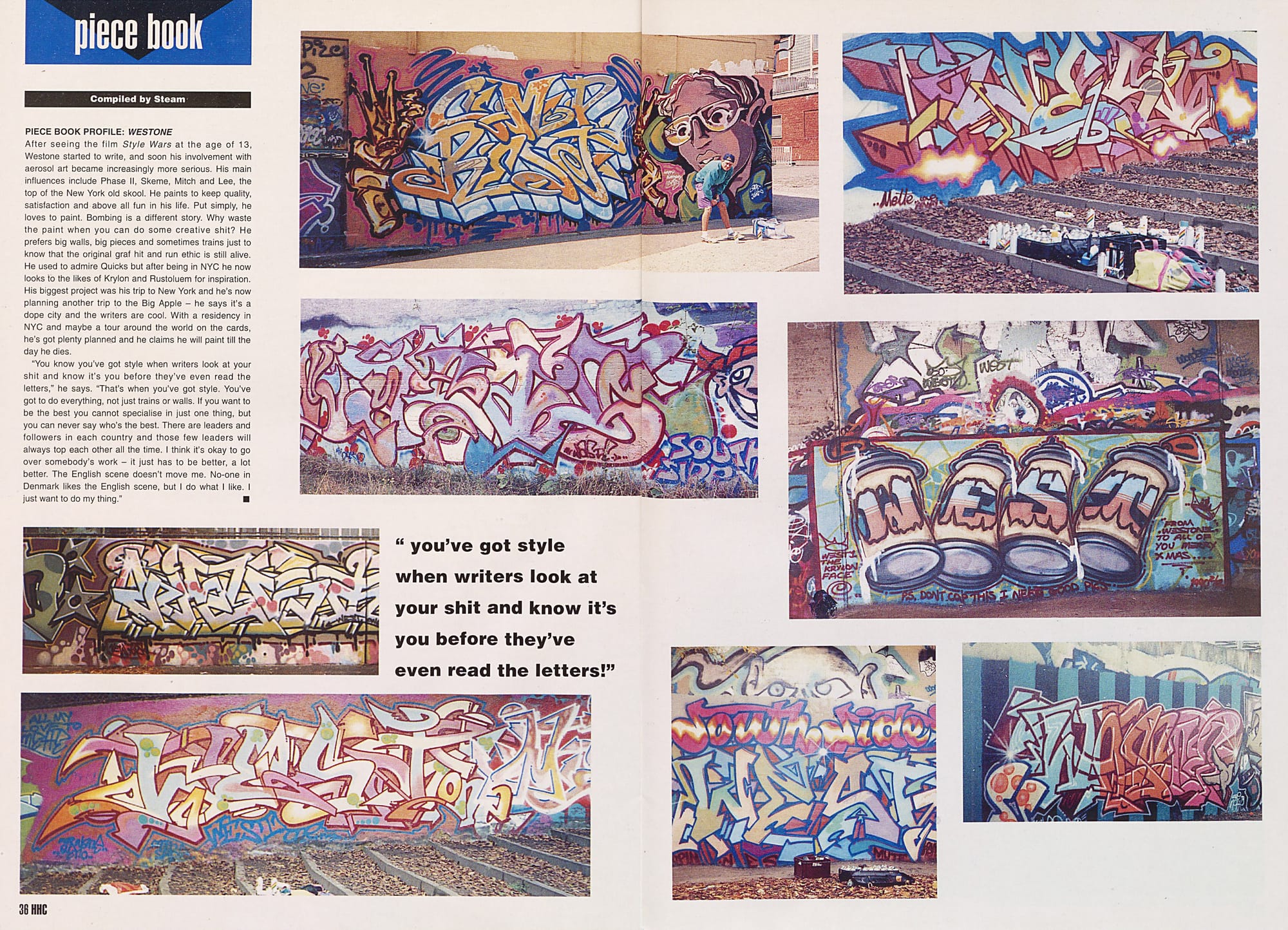 Okay, so here it is. Yet another "who?" writing the Piece Book section... Well, maybe so, but you might have heard of Graphotism International - the UK's premier graf mag - at least. Anyhow, from now on (hopefully) you'll actually want to read this section. I am a writer so I know what it's like - so check it out... The aim of this column should be, I believe, to represent and kick UK graf out to the world as well as showing the top pieces from the rest of the planet.