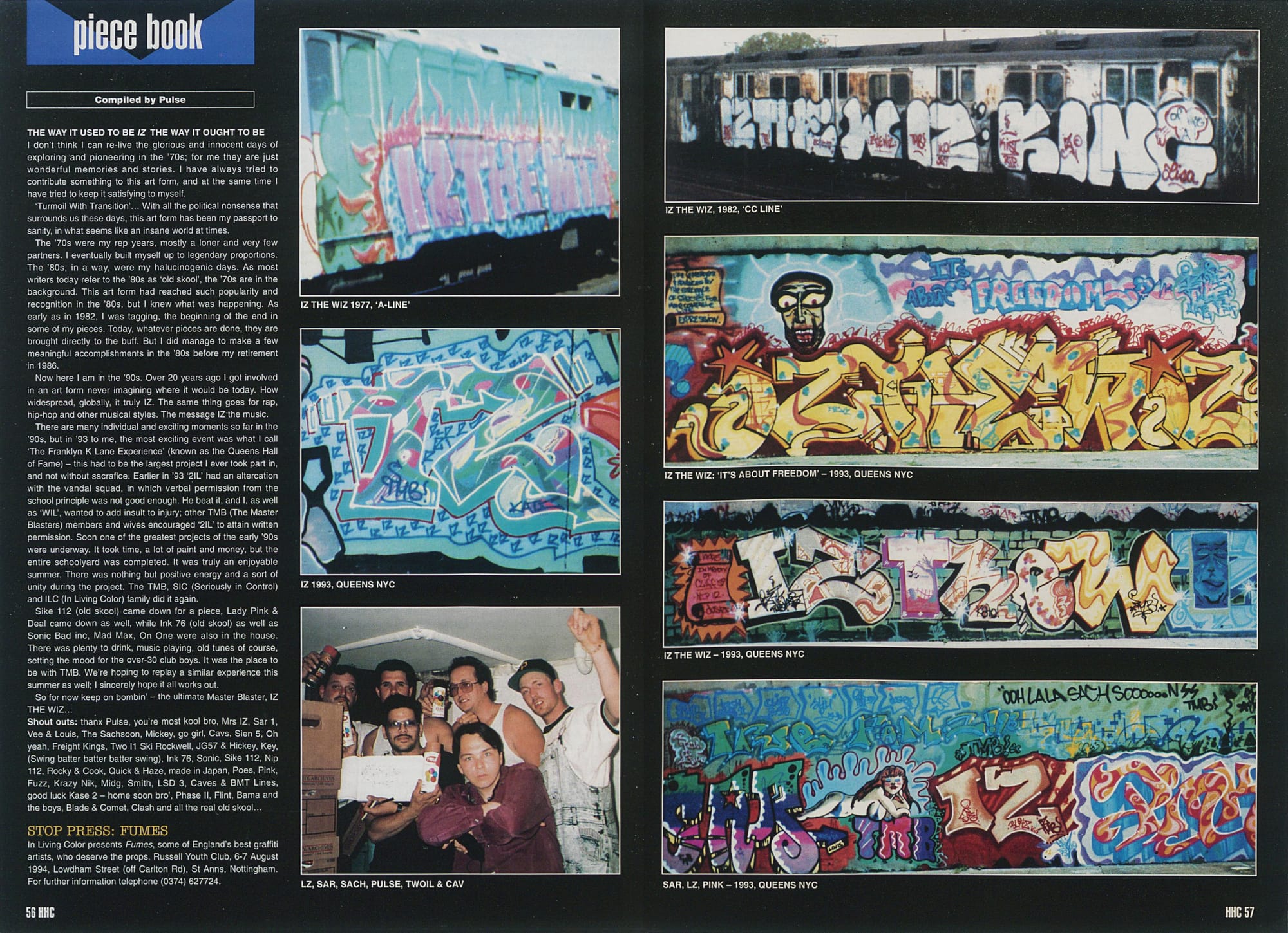 Shout outs: thanx Pulse, you're most kool bro, Mrs IZ, Sar 1, Vee & Louis, The Sachsoon, Mickey, go girl, Cavs, Sien 5, Oh yeah, Freight Kings, Two 11 Ski Rockwell, JG57 & Hickey, Key, (Swing batter batter batter swing), Ink 76, Sonic, Sike 112, Nip 112, Rocky & Cook, Quick & Haze, made in Japan, Poes, Pink, Fuzz, Krazy Nik, Midg, Smith, LSD 3, Caves & BMT Lines, good luck Kase 2 - home soon bro', Phase II, Flint, Bama and the boys, Blade & Comet, Clash and all the real old skool...
